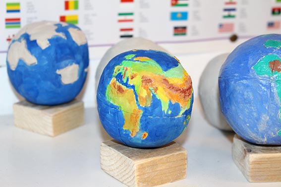 Wir versprachen, zu berichten, ob und wie es mit den Erdenkugeln in der Geografieepoche der 9. Klasse weiterging.* Es entstanden einige sehr schöne Exemplare in sorgfältiger und filigraner Handarbeit.