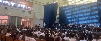Seit 2018 sind wir bei uns dazu übergegangen, am Freitag vor der öffentlichen Aufführung eine interne Feier zu veranstalten. Damit kommen wir dem ursprünglichen Gedanken, dass die Schüler sich untereinander wahrnehmen, wieder näher und es hat den gewünschten Nebeneffekt, dass die Stühle im Foyer für die Besucher am Samstag (fast) reichen.