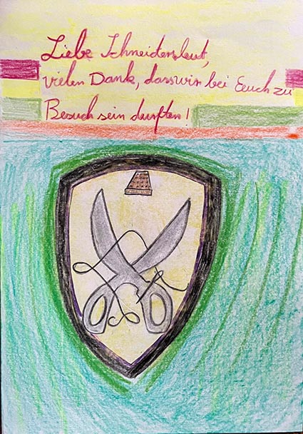 „Wir waren bei einem Schneider, der schon seit 64 Jahren als Meister arbeitet und im Sommer 90 Jahre alt wird. Er hat uns erzählt, dass es das Schneiderhandwerk seit der Vertreibung aus dem Paradies gibt, denn jeder Mensch auf Erden muss sich kleiden, damit er vor Kälte und Hitze geschützt ist.